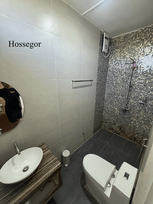 This is a standard double room with air conditioning, a tea maker and a private bathroom featuring a walk-in shower and a hairdryer.